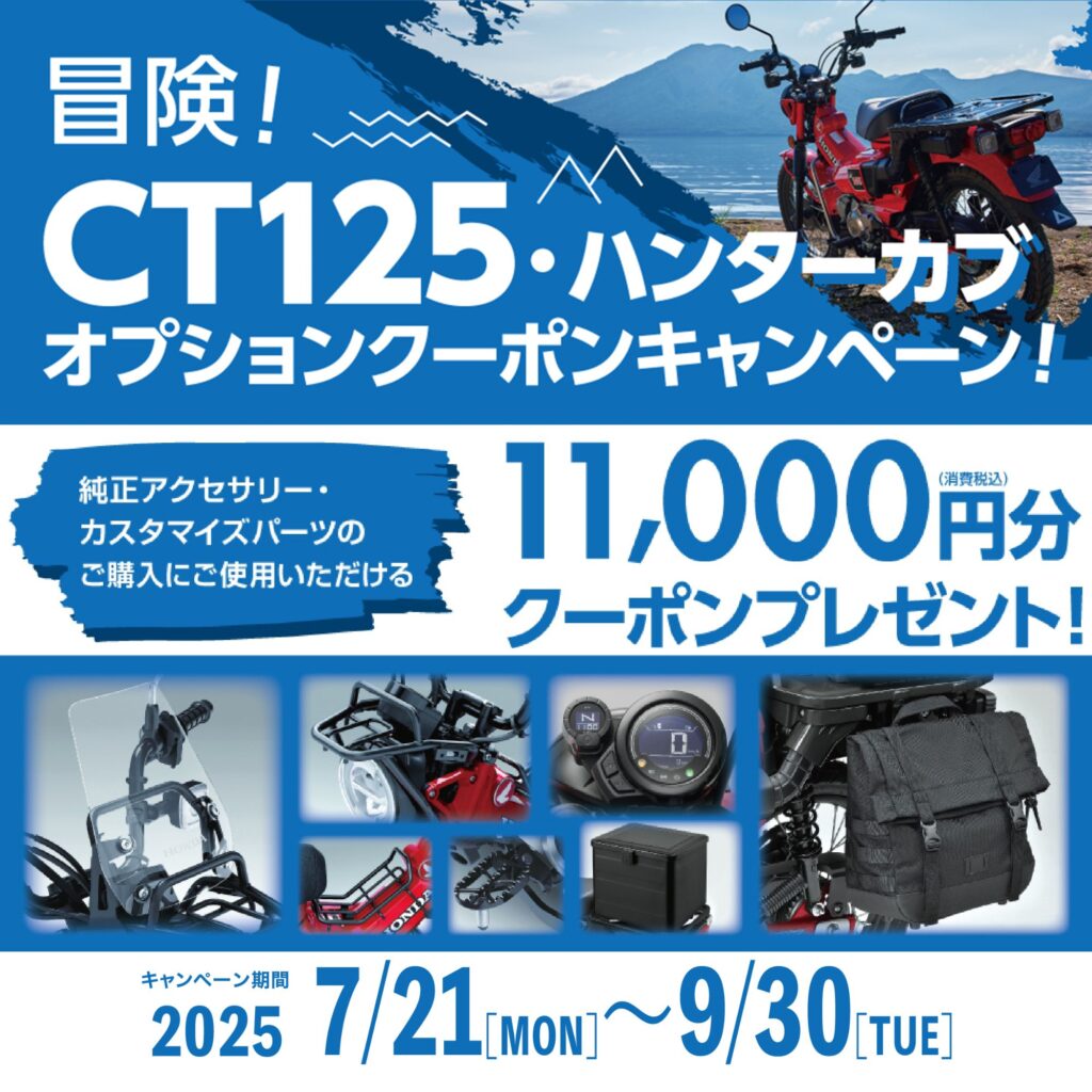 期間中ハンターカブをご購入いただくとオプション購入に使える11000円分のクーポンがもらえます